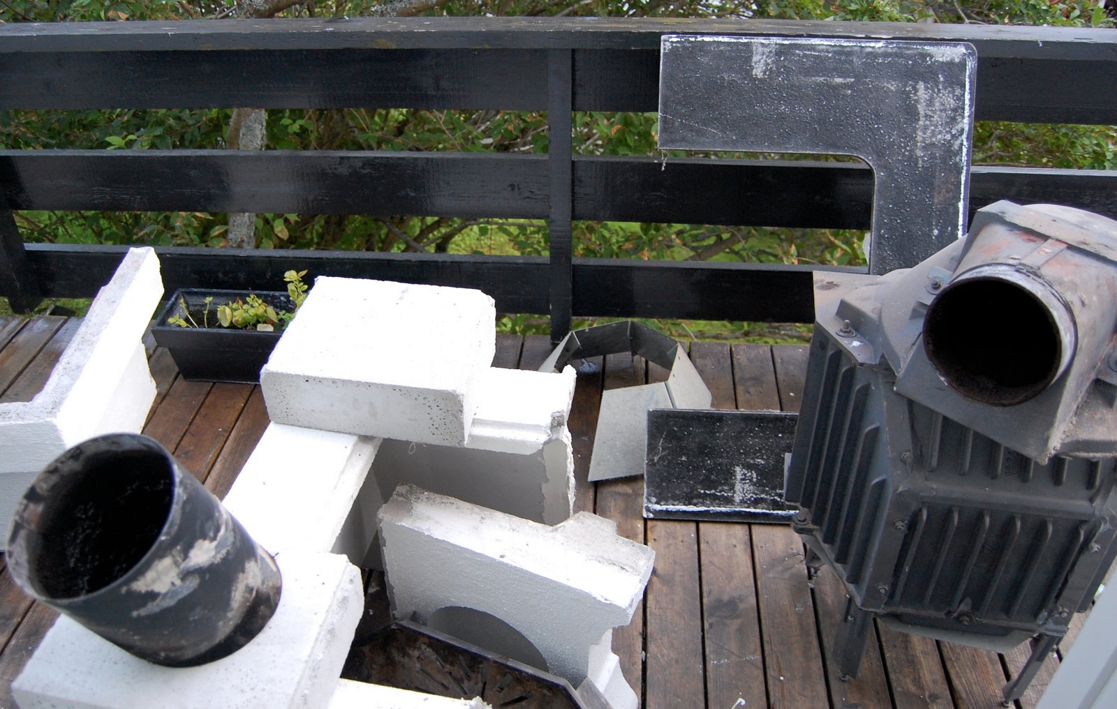 Denne ga lite varme, slukte ved og var ikke så fin. Den nye står i kjelleren. 130 kg. Spent på hvordan vi skal få den opp. Du kan se et gløtt av den i et tidligere innnlegg her et sted... Som jeg gleder meg! Men nå blir det et par uker med plasttelt i stua. Bare bare skal også gjøres, har jeg lært.