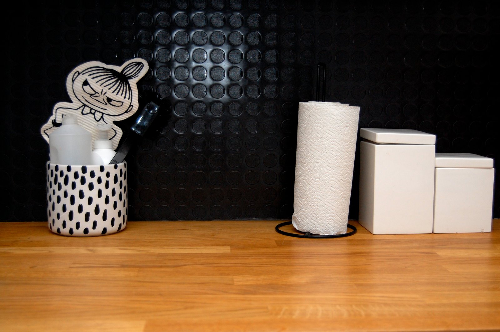 We didn´t have to do something with our kitchen. But I wanted to. You can see why?! But it took some time. Here´s a little sum up on our project kitchen. I´m happy with the result. Without building a new kitchen it actually feels like we have a new. Though I see details I would like to change, I can live with this. I´m proud of what we´ve done without buying new things. The rubber floor was meant for our stair steps in the hall, but we didn´t get to use it. So instead of buying something new, we did as Ymmeli- glued it to the walls. Now we´ll jut have to paint the roof. I guess that will be next year... Or hopefully not.